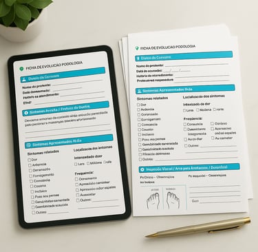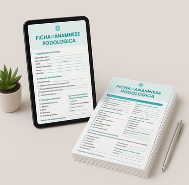 “Eleve a qualidade e credibilidade do seu consultório com protocolos, fichas e materiais visuais criados especialmente para podólogos.”