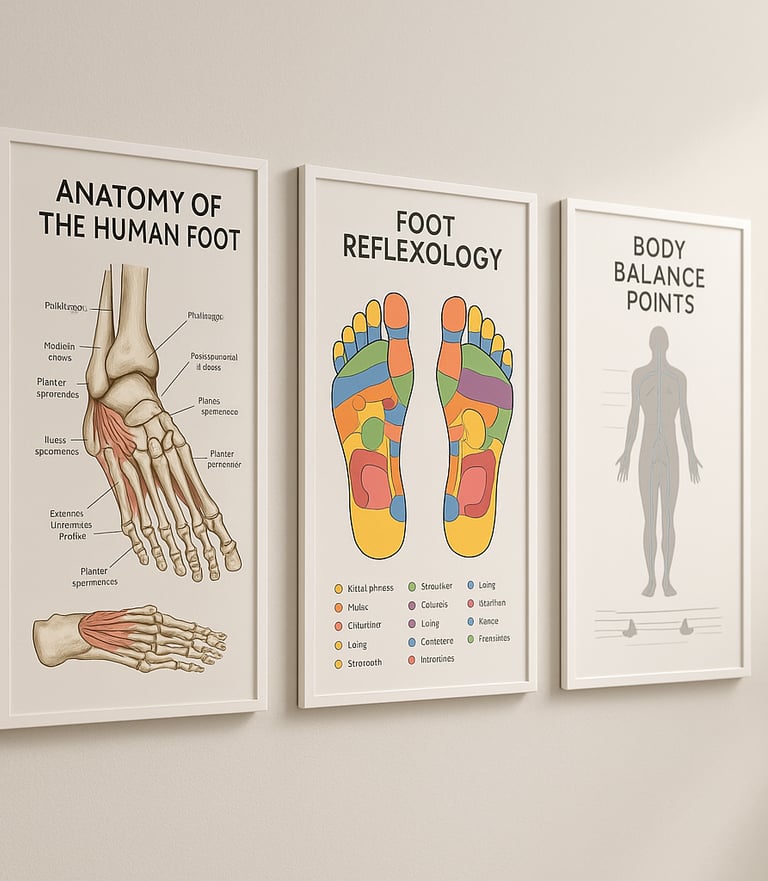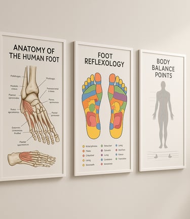 Inclui: Mapas anatômicos, zonas de reflexologia e pontos de equilíbrio corporal. Perfeito para pendurar no seu consultório ou usar com seus pacientes.
